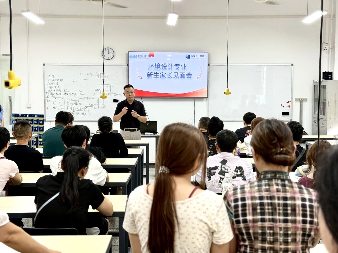 本网讯(通讯员:董珺 余健)为进一步加强学校与家庭、教师与家长之间的密切联系,增进每一位家长对学院教育教学及孩子学习生活的了解,创设和谐的教学环境,真正达到家校携手共同培养孩子的目标,环境设计学院于2025年9月10日下午在和光3029、2039和2049教室分别举行了三场新生家长见面会。