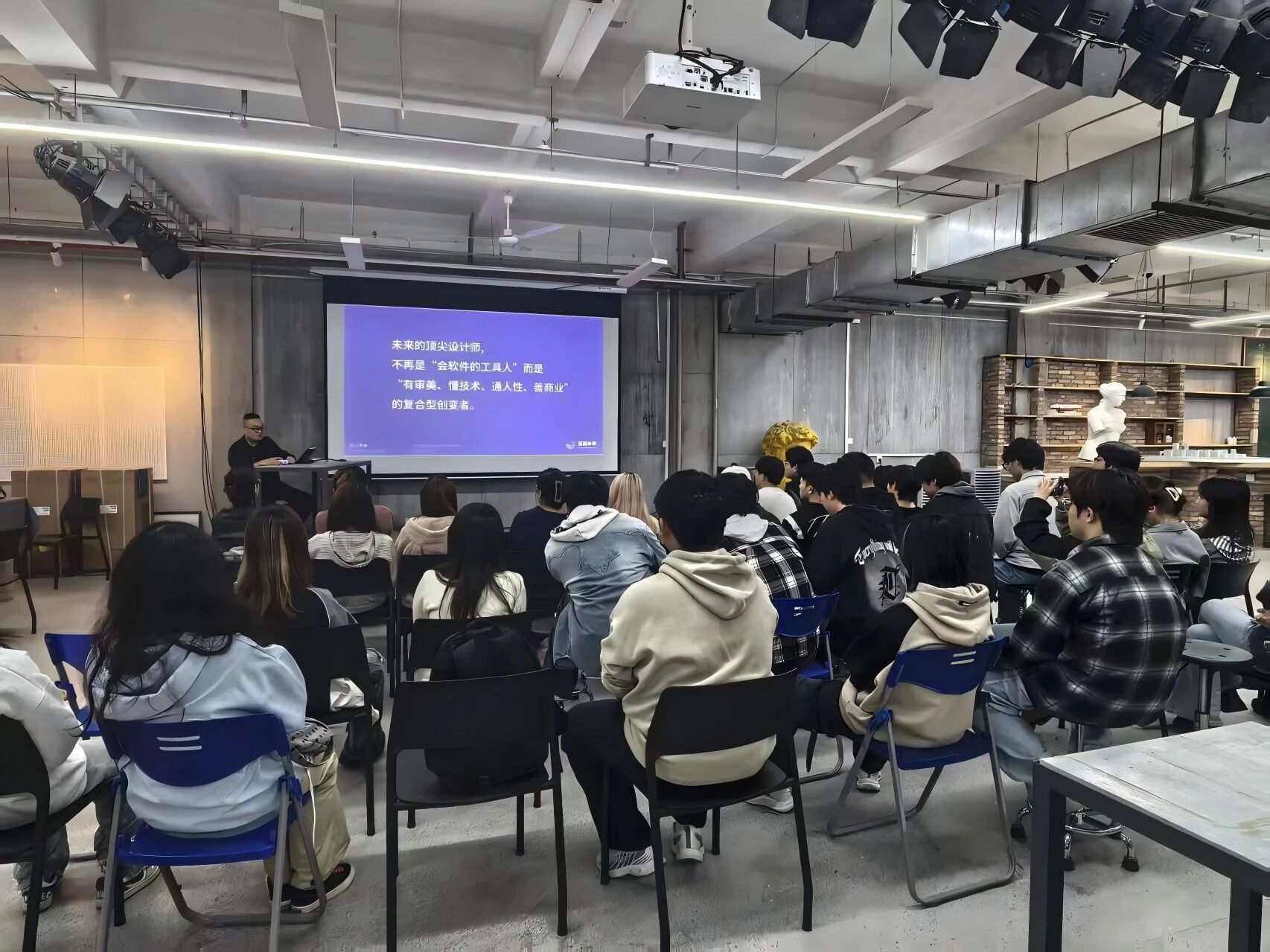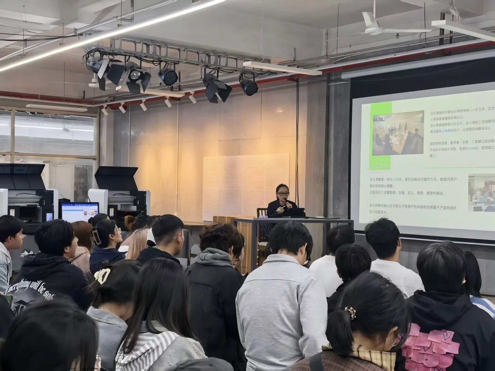 2025年11月4日下午16点50分,深圳市蓝鲸未来科技有限公司应邀莅临我院,在模型制作实验室开展了一场关于“激光造物”的交流活动,本次活动吸引了环境设计专业和风景园林专业的40多名同学参加,现场气氛热烈,交流深入。