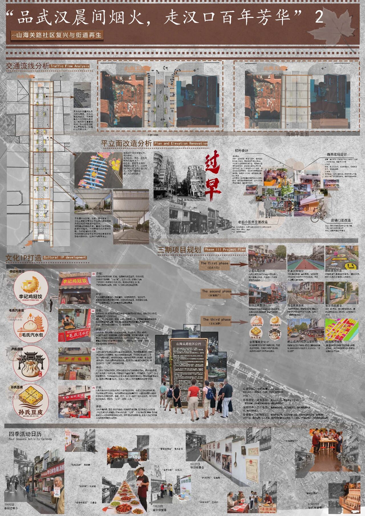 近日,2025年武汉国际创意设计大赛(金黄鹤奖)评选结果揭晓。环境设计学院师生跨专业组队报送的设计项目:《品武汉晨间烟火,走汉口百年芳华——山海关路社区复兴与街道再生》,在“山海关路片街道空间与文化标识重塑方案”命题中获得专业组一等奖。