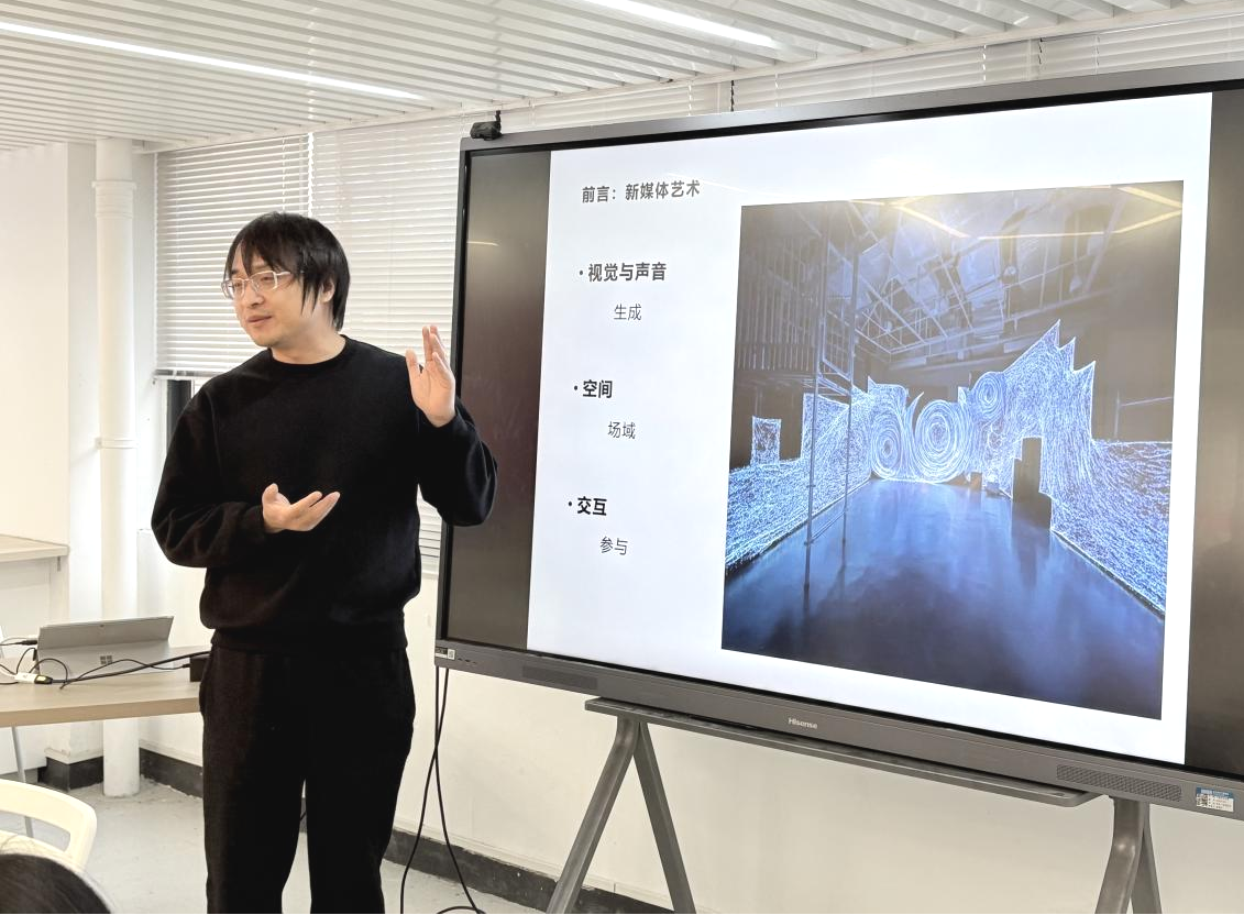 分享会上,陈老师从数字技术为艺术注入新活力入手,指出数字艺术作为新媒体语境下的重要形态,其核心在于艺术与科技的深度融合。数字科技已不仅是创作工具,更成为艺术表达的有机组成部分。无论是算法生成的动态视觉作品,还是虚拟现实构建的沉浸式交互场景,亦或是借助大数据与人工智能实现的创意表达,数字技术都打破了传统艺术的创作边界与表现形式,使艺术家能够通过代码、数据、光影等多种媒介,传递对世界的感知与思考。