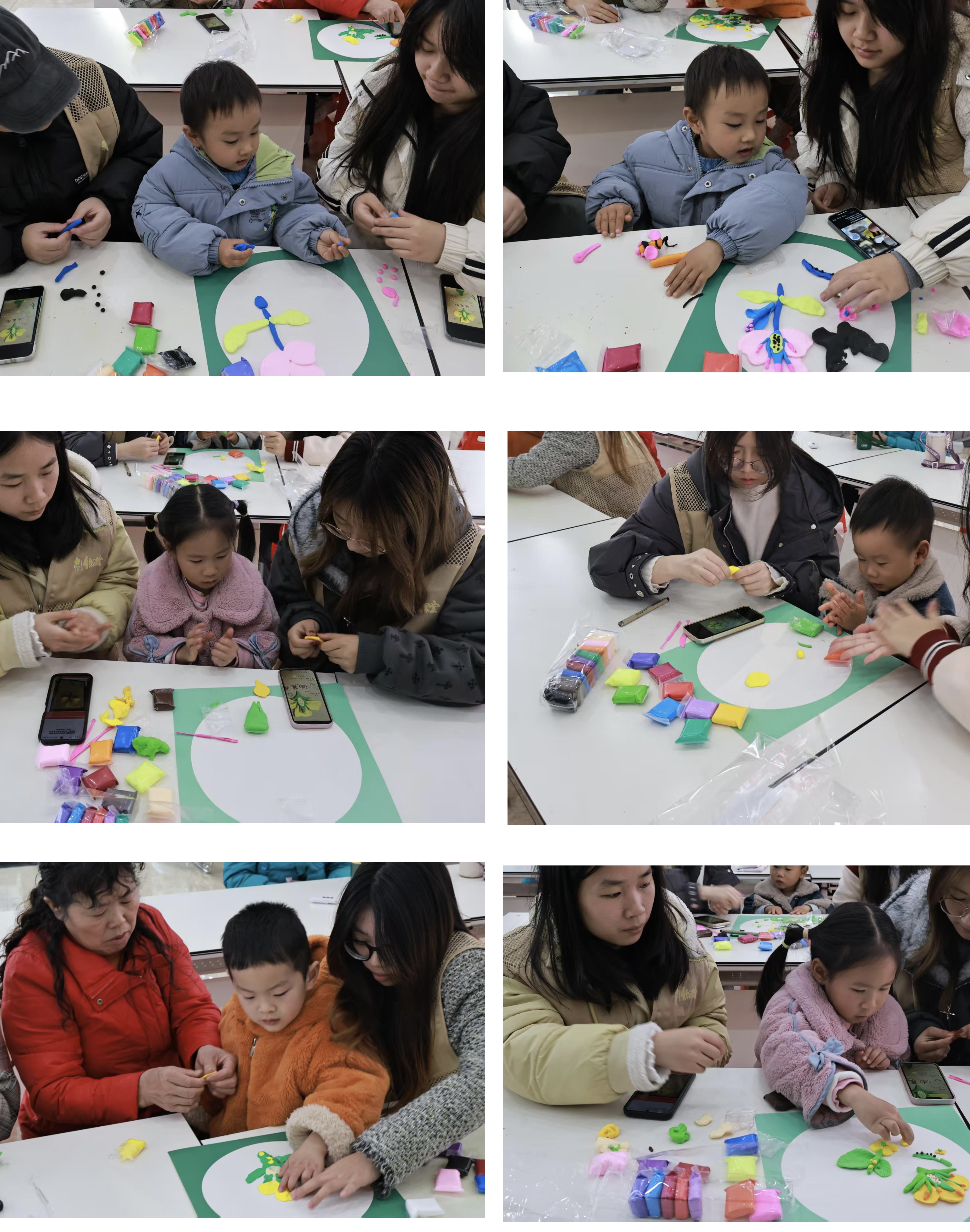 最令人期待的,当属“指尖捏出油菜花”环节。志愿者将黄、绿两色的橡皮泥分发给孩子们,先示范制作步骤:取黄色橡皮泥捏出四片小巧的花瓣,拼成十字形;再用绿色橡皮泥搓出笔直的花茎,捏出带锯齿的叶片,最后把花瓣粘在花茎顶端,一朵立体的油菜花就成型了。孩子们立刻动手创作,有的小朋友给花瓣捏出波浪边,有的给花茎加上“小绒毛”,还有的捏出一整束油菜花,搭配上自己画的田野背景。志愿者们穿梭在孩子中间,耐心指导着小手笨拙的小朋友,“花瓣再捏小一点会更像哦”“花茎要搓得直一点”。活动室里满是橡皮泥的揉捏声和孩子们的欢笑声,不一会儿,桌上摆满了形态各异的橡皮泥油菜花,每一朵都藏着孩子们的奇思妙想。
