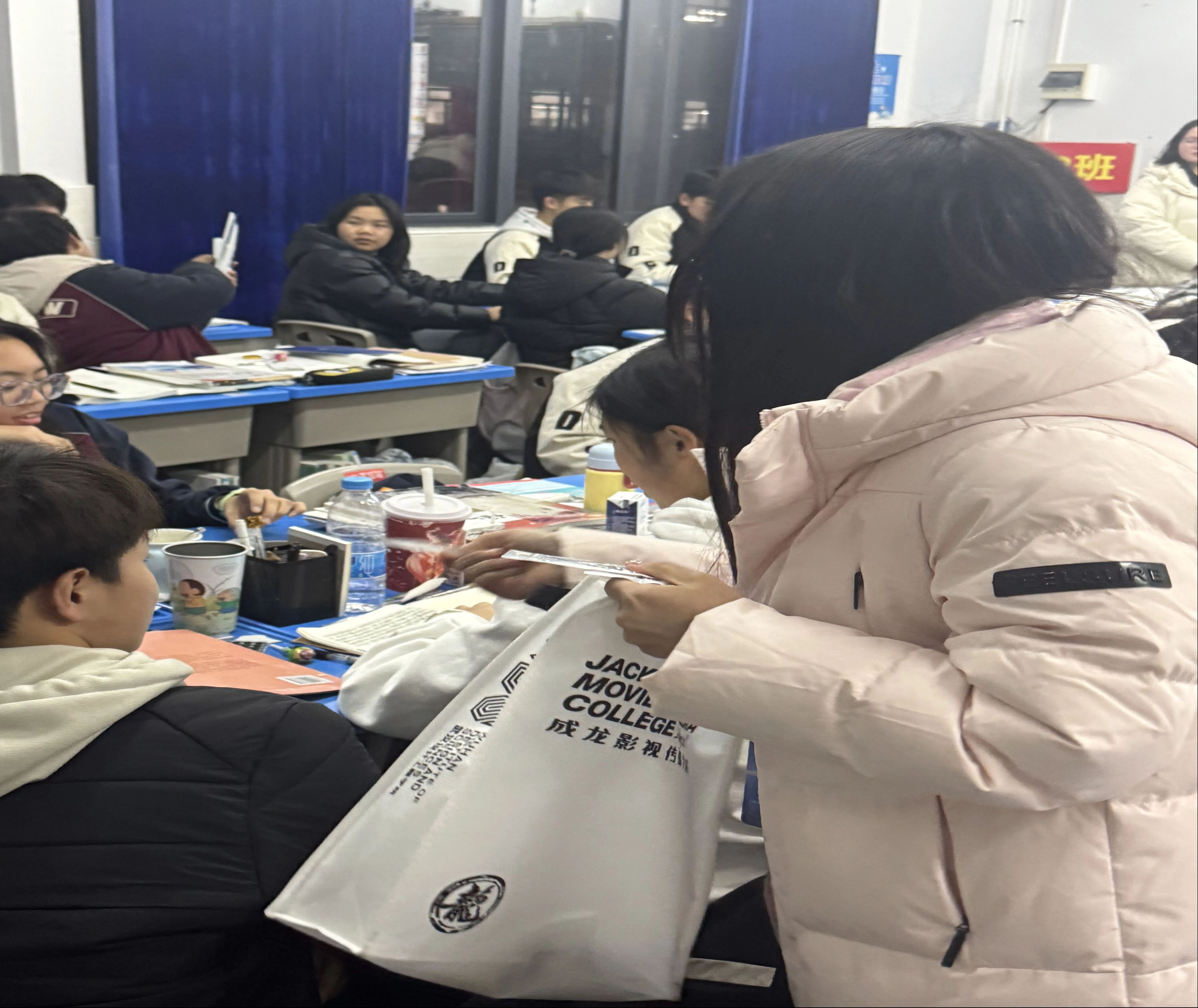 活动尾声,实践队向清江外国语学校的学子赠送了定制文创纪念品,每一份礼物都承载着武设的诚挚祝福与殷切期待。“心向武设,奔赴热爱,愿我们在汤逊湖畔相逢,共赴青春之约!”队员们真挚的寄语,令现场学子倍感鼓舞。许多同学表示,通过此次宣讲,不仅对武汉设计工程学院有了更全面、深入的认识,也更加明确了备考方向,坚定了奋斗目标,对大学生活充满向往。
