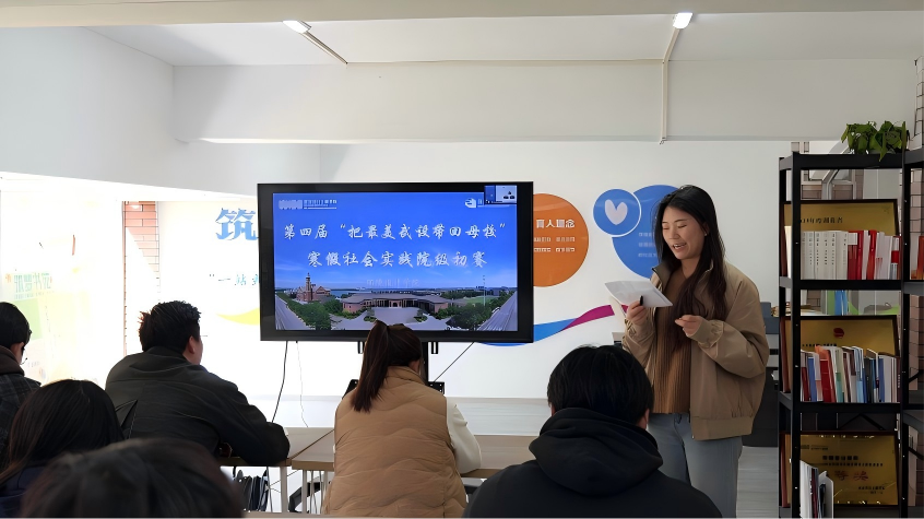本网讯(通讯员:孙韵皓 陈冠宇 殷志惠)3月13日下午,环境设计学院第四届“把最美武设带回母校”寒假社会实践活动院级初赛在筑梦书院学生社区共享客厅顺利举行。学院党总支副书记黄俊杰、辅导员向鋆潞、李白洁、杨春颖与11支入围团队齐聚现场,共同聆听学子们回访母校、传递武设魅力的实践故事。